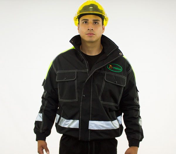 Características 2 bolsillos superiores con broche 2 bolsillos laterales con cierre Rey 2 bolsillos multifunción en brazos 1 bolsillo portacelular interno Cinta reflectiva Scotchlite Cod 8912 de 2” Cintura ajustable, puños elasticados, diseño con costuras resaltantes en blanco y combinación negro con amarillo fluor